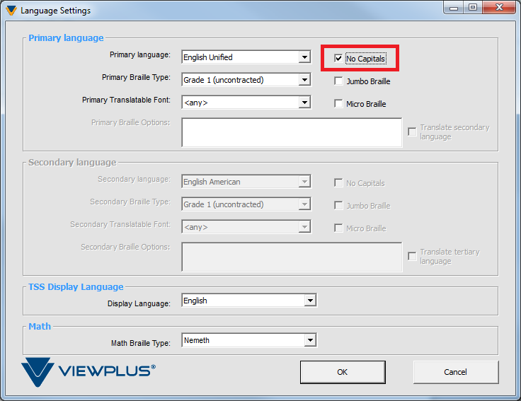 If capital indicators are missing from your translated document, your currently selected Braille language might not support them.